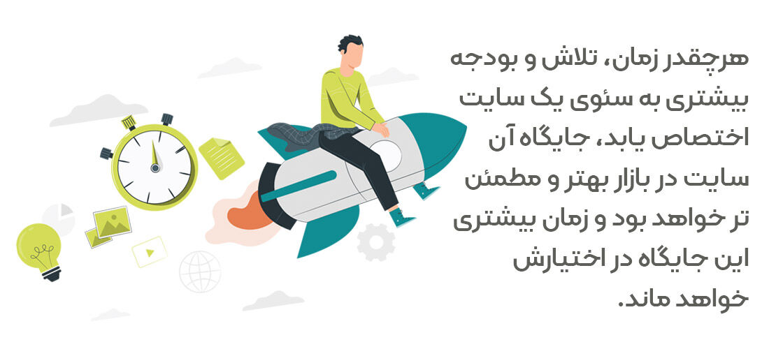 قاعده کلی این است که هرچقدر زمان، تلاش و بودجه بیشتری به سئوی یک سایت اختصاص یابد، جایگاه آن سایت در بازار بهتر و مطمئن تر خواهد بود و زمان بیشتری این جایگاه در اختیارش خواهد ماند.